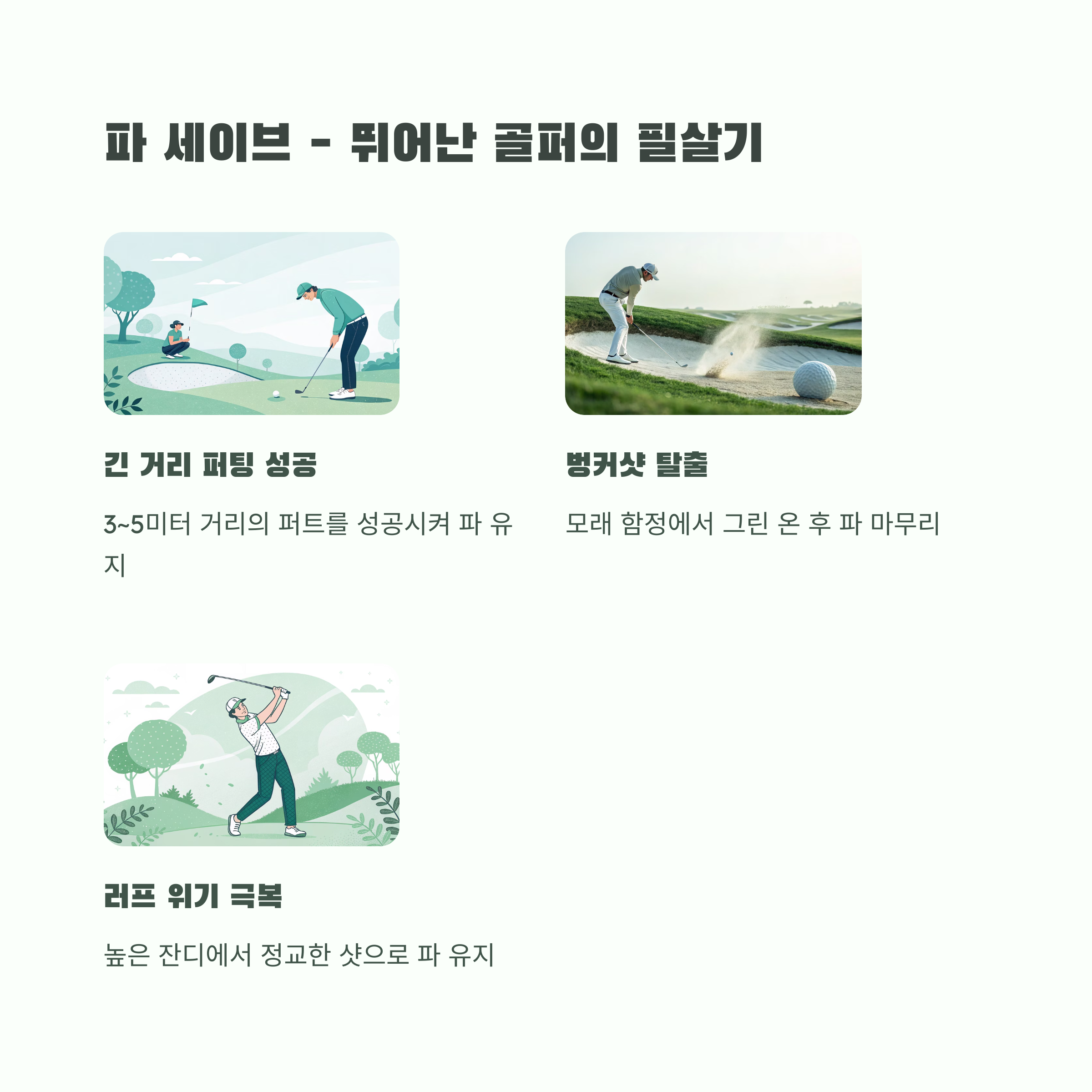 OB 이후 리커버리 샷이나 러프에서의 업앤다운으로 파를 만드는 경우입니다