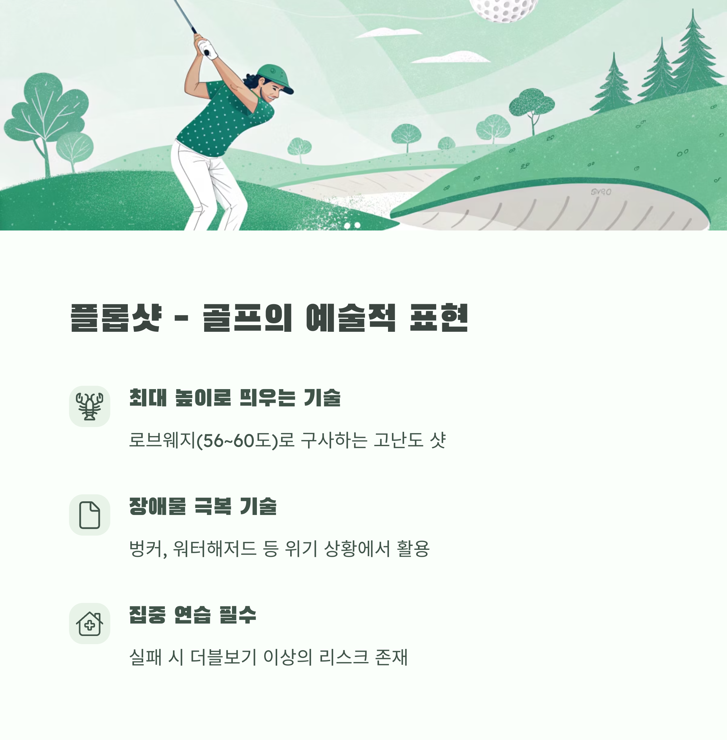 "플롭샷은 공을 높이 띄워 짧은 거리로 멈추게 하는 고난도 샷입니다"