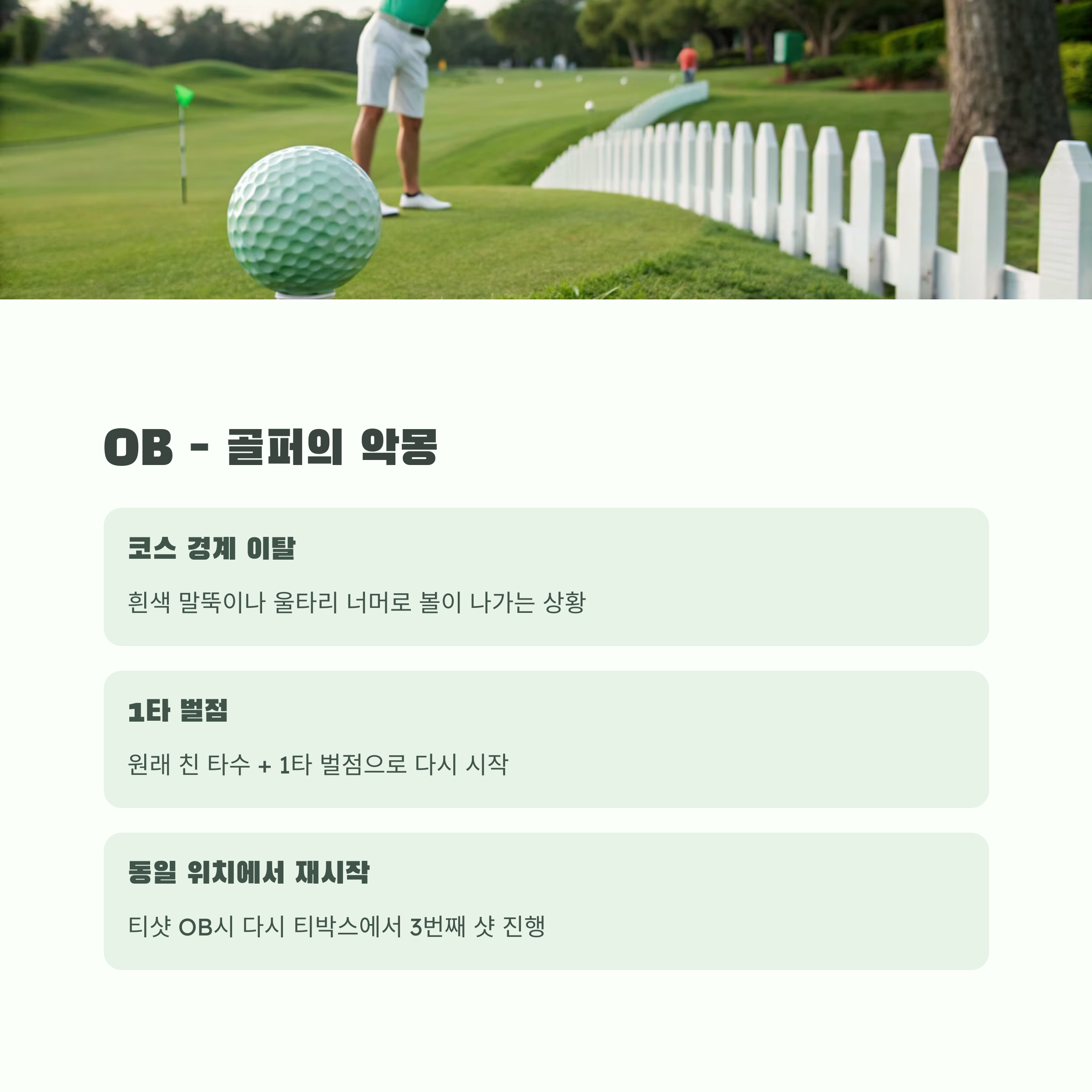 "OB는 공이 코스 밖으로 나가 벌타를 받는 상황입니다"