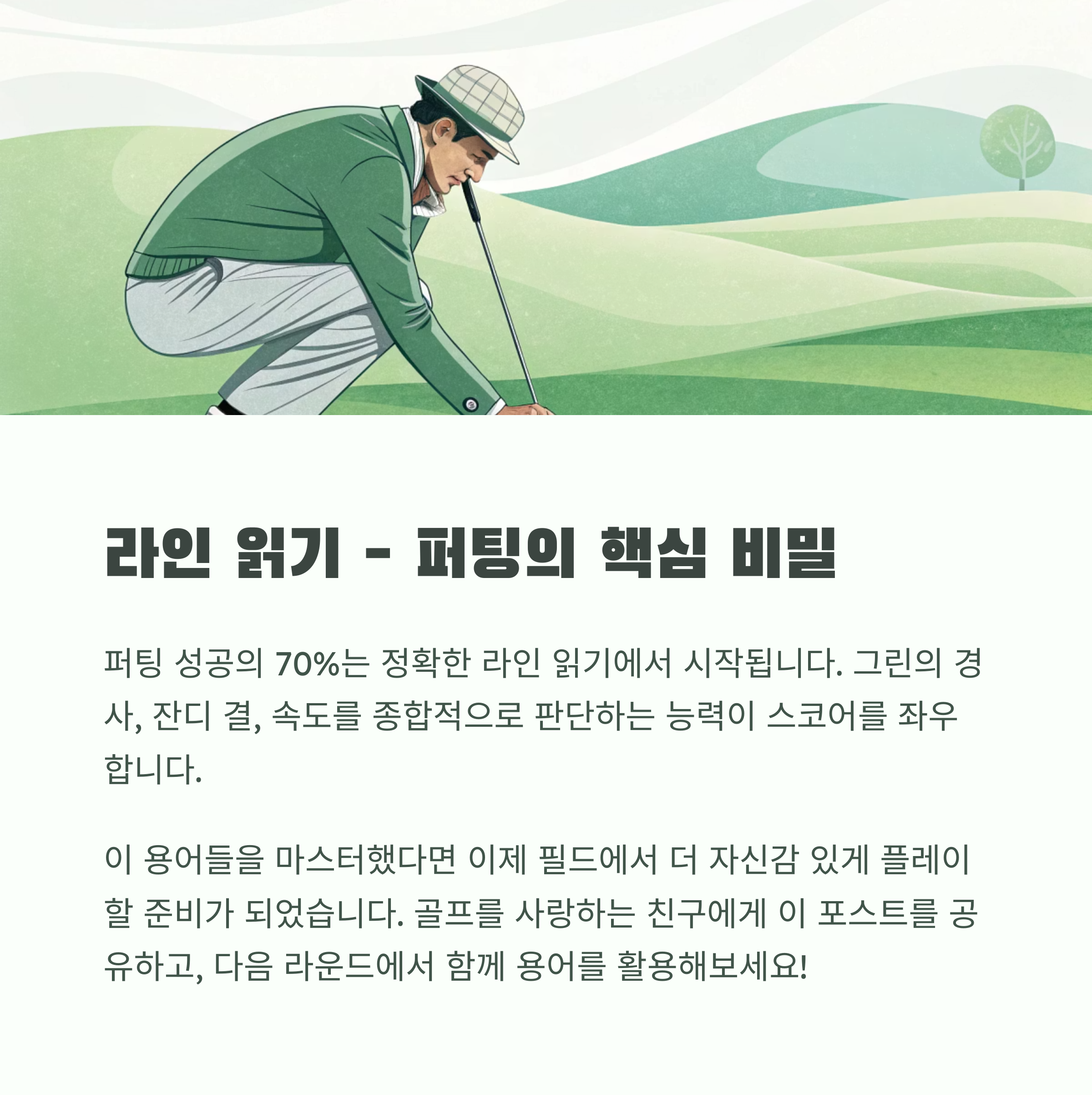 "라인 읽기는 퍼팅 시 볼이 굴러갈 경로를 예측하는 기술입니다"