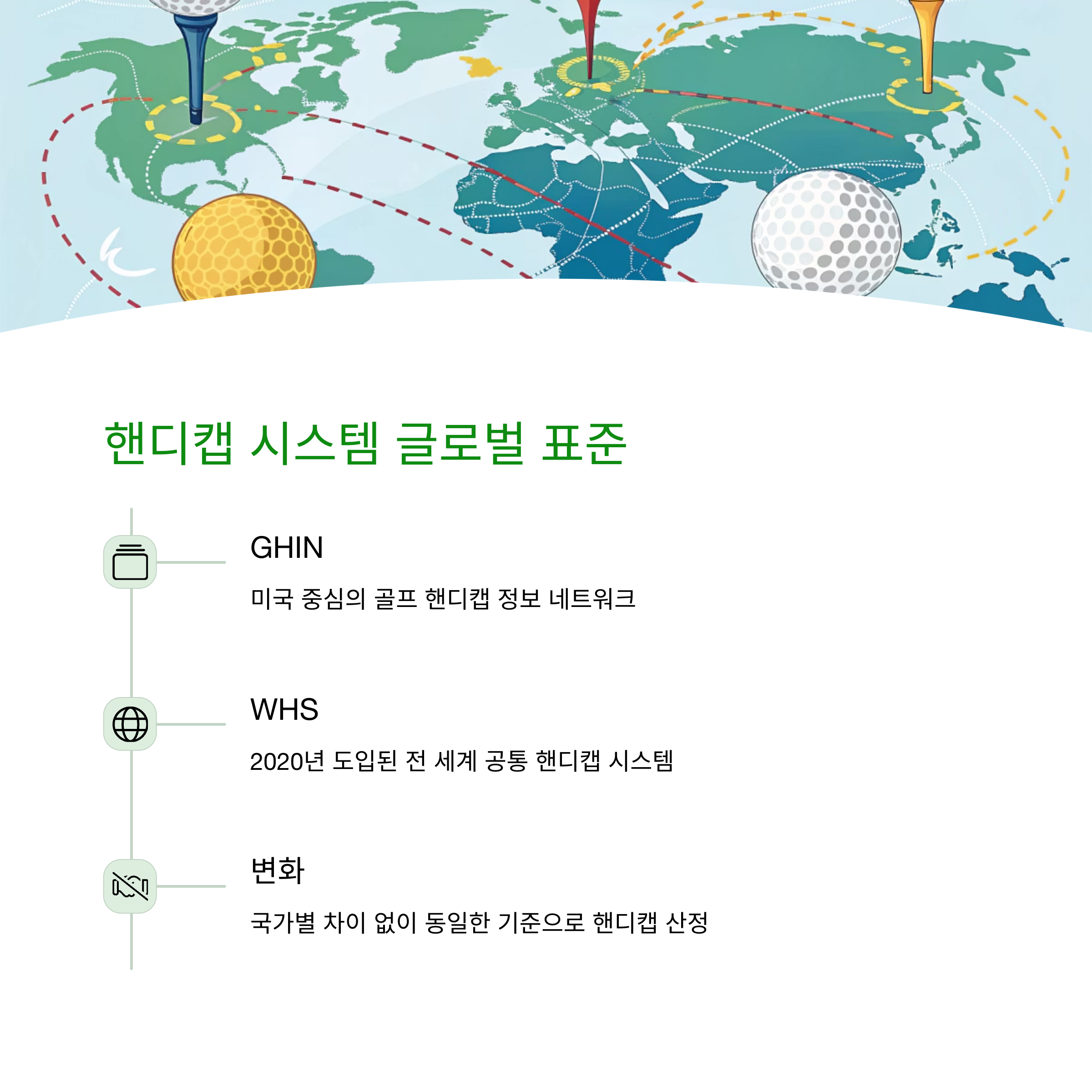 WHS는 국제 표준으로, 전 세계 골퍼들이 동일 기준에서 핸디캡을 비교할 수 있도록 설계되었습니다.