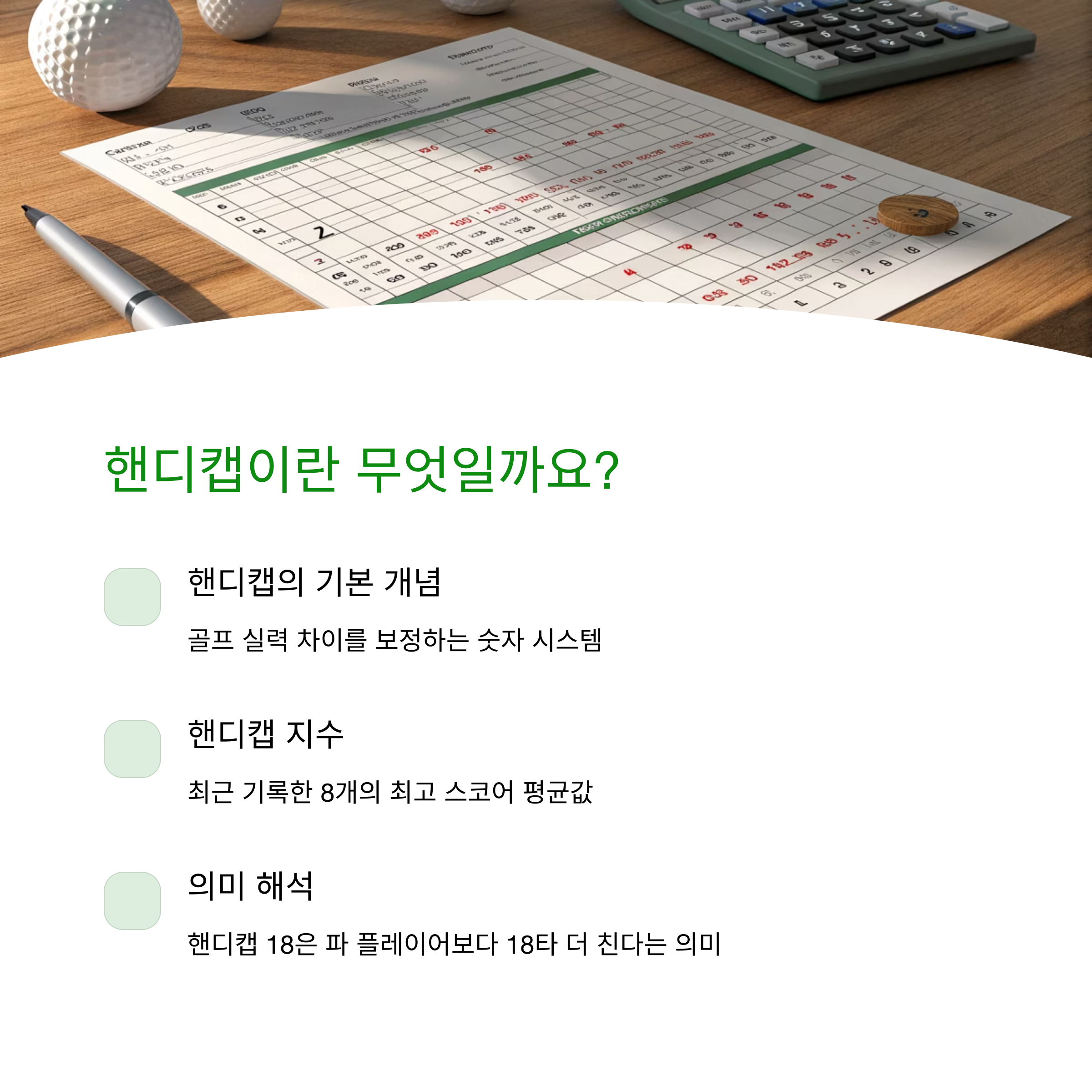"핸디캡은 골프 실력을 수치화한 나만의 이력서"라고 볼 수 있어요.