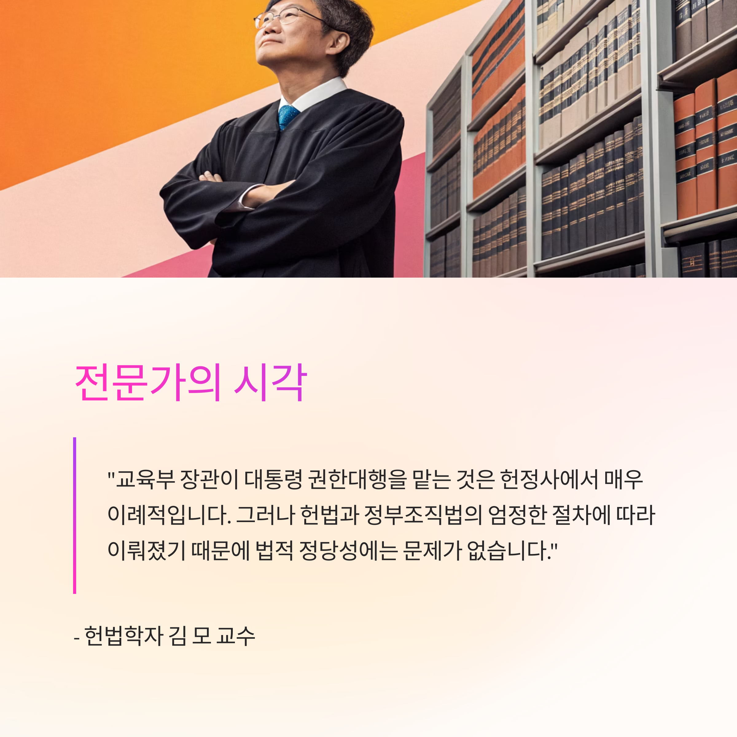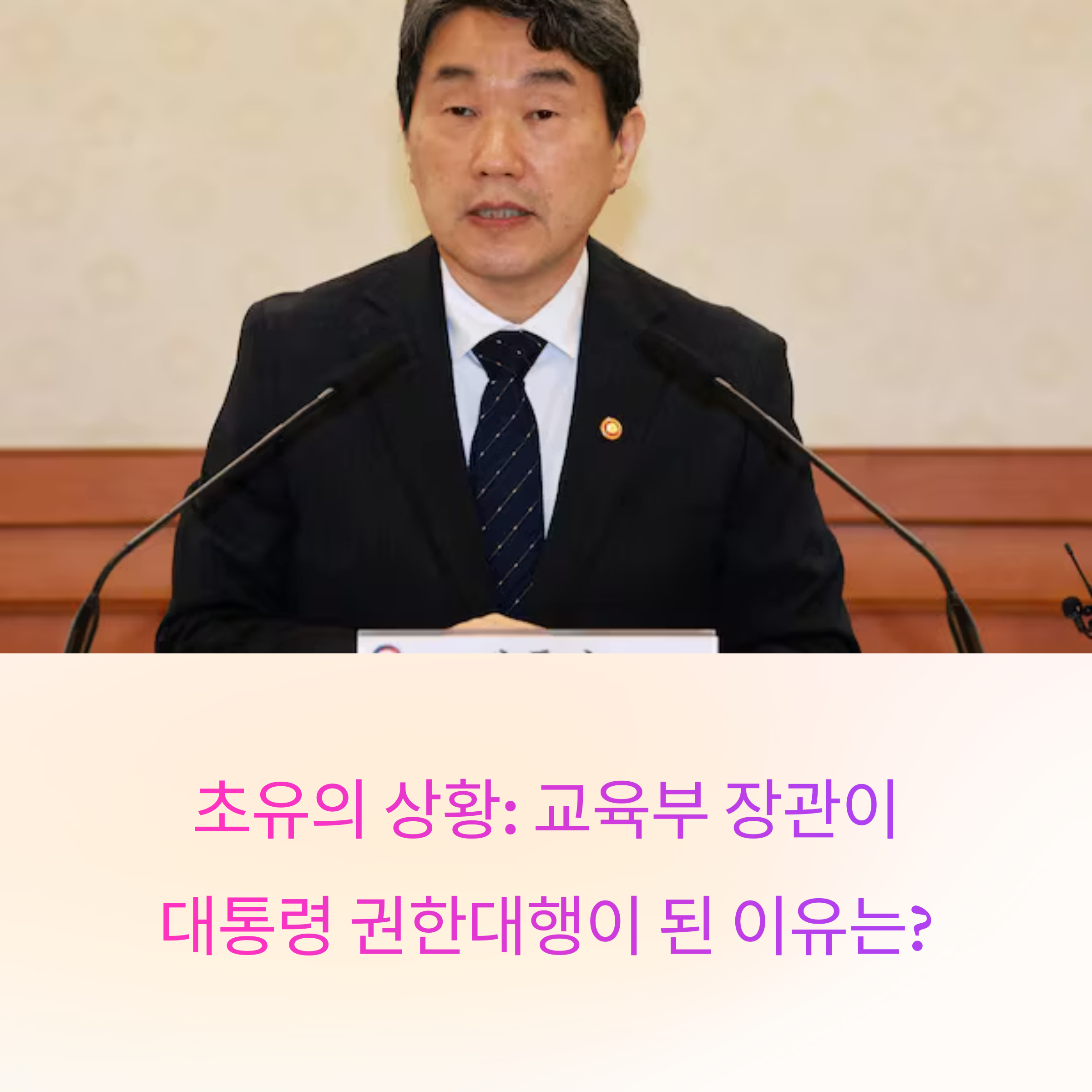 "교육부 장관이 대통령 권한대행을 맡는 것은 헌정사에서 매우 이례적입니다.