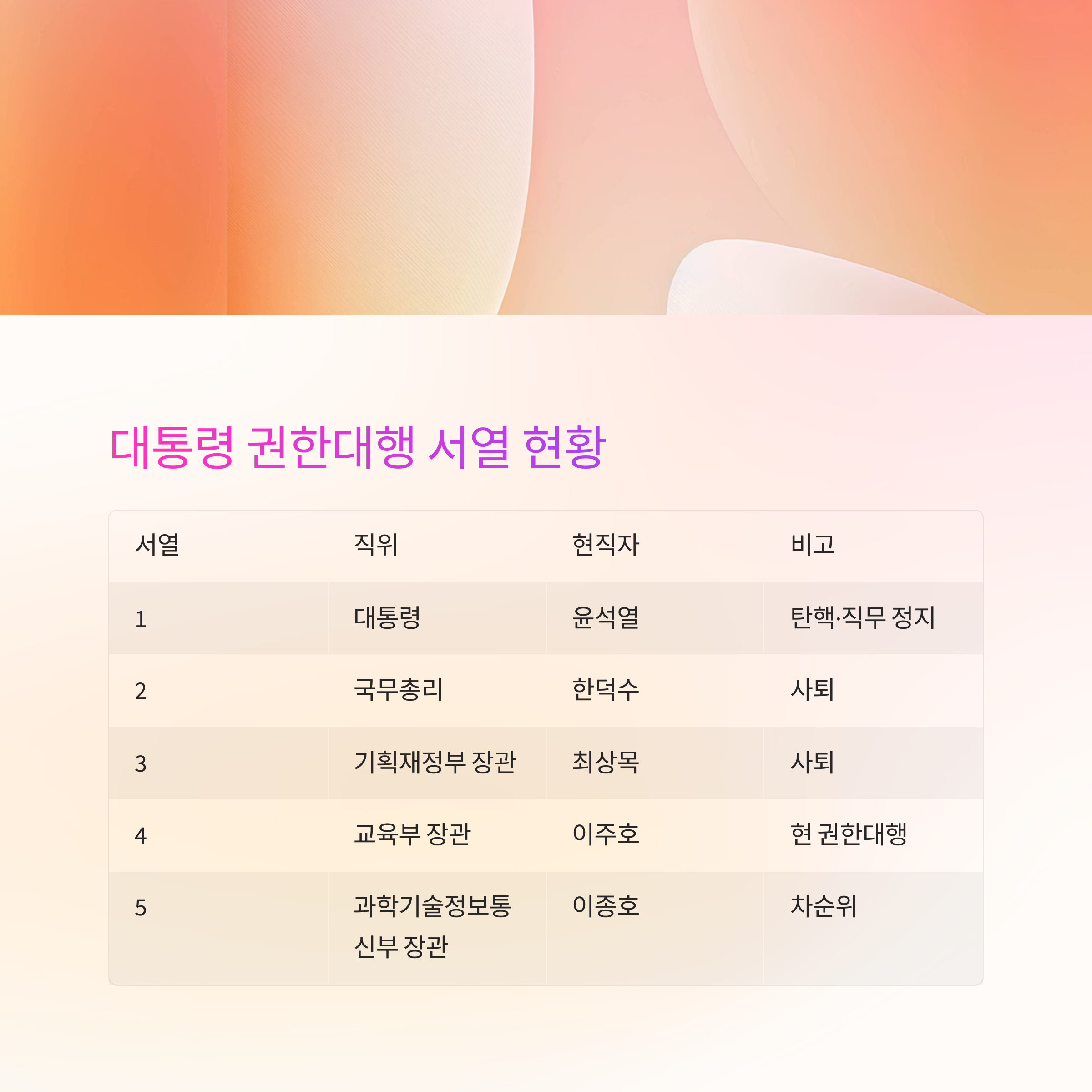 대통령 권한대행 서열 표