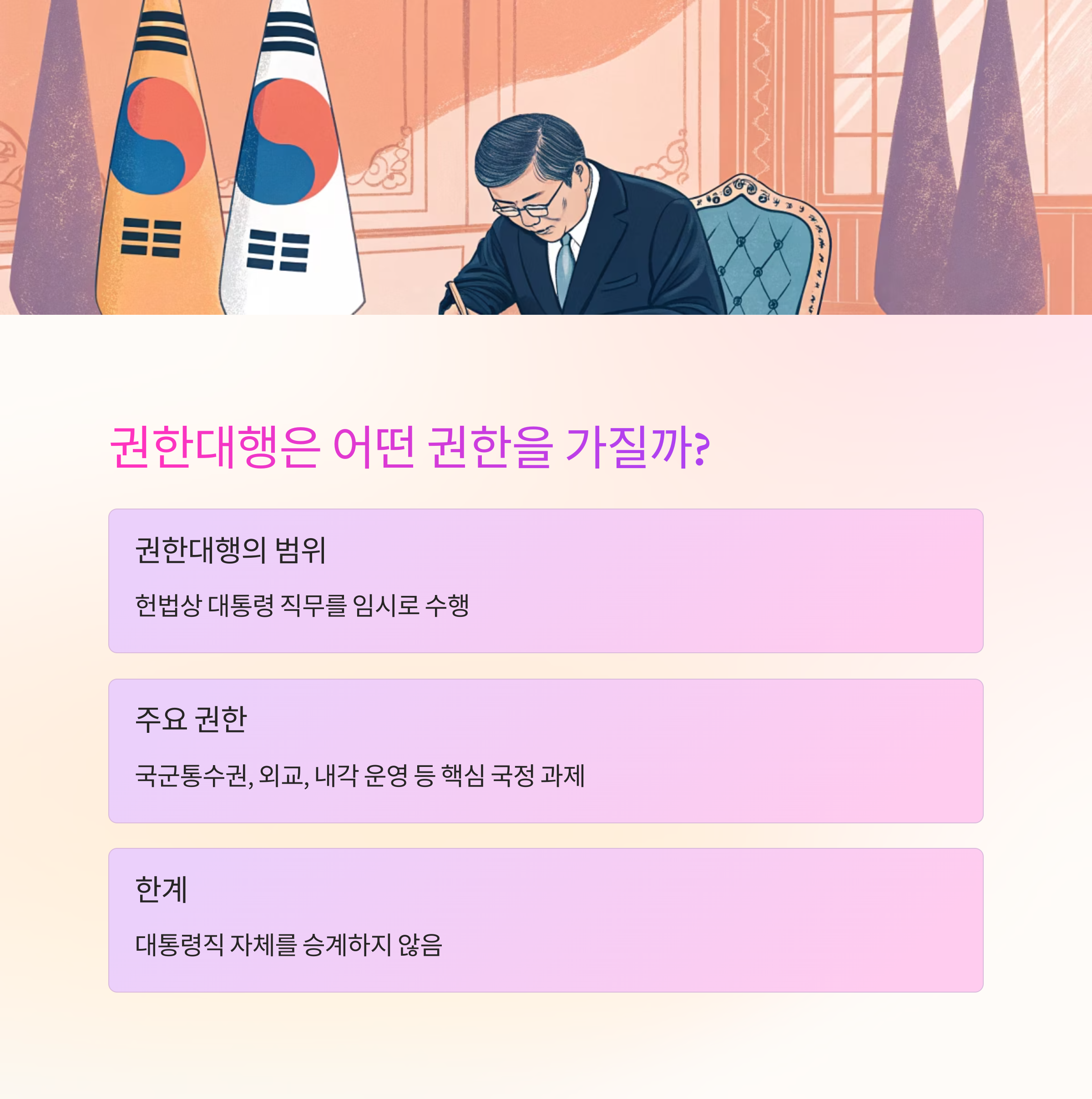| 권한대행 종료 시점 | 새 대통령 취임 후 자동 종료 |