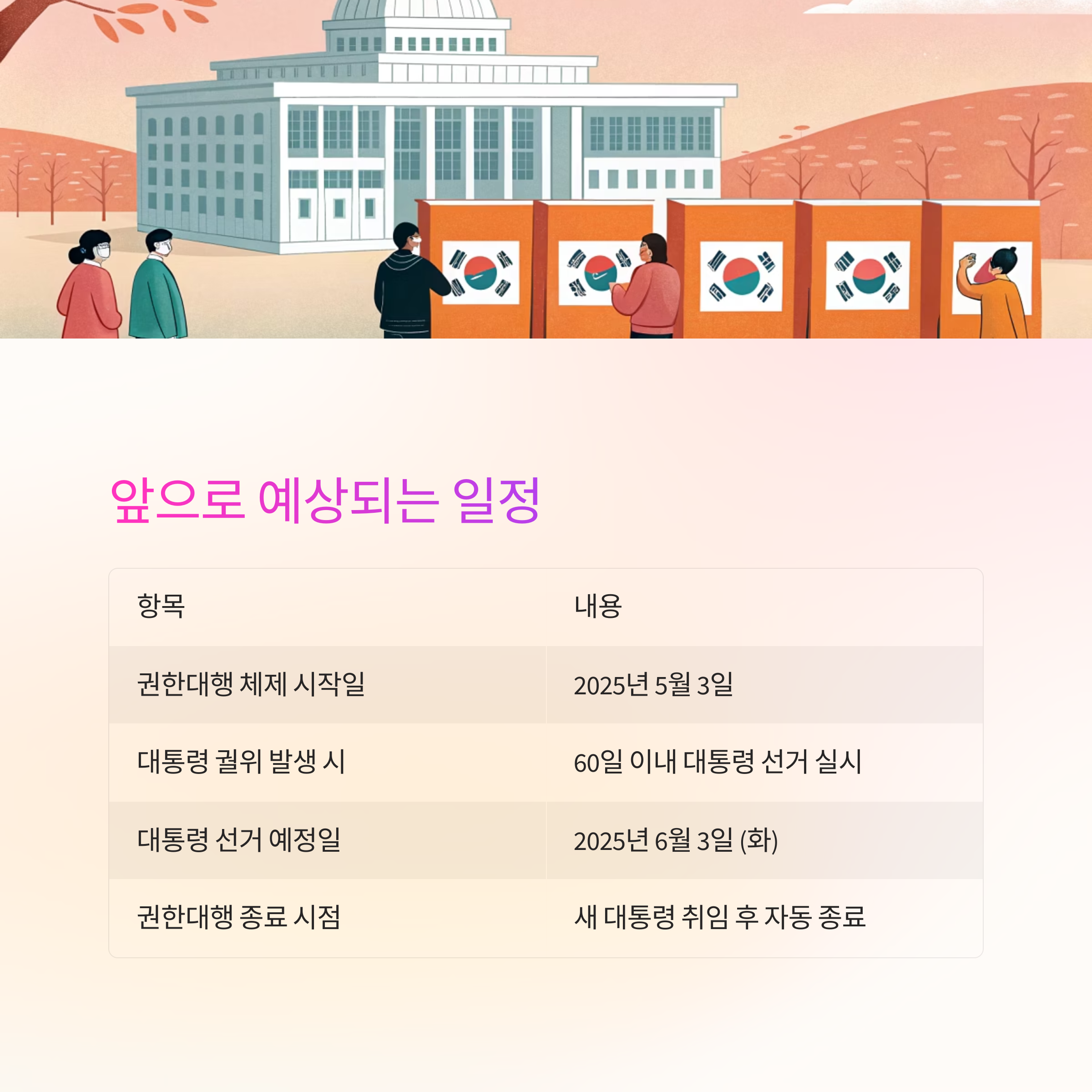이 표를 통해 앞으로의 정치 일정과 권한대행 체제의 마무리 시점을