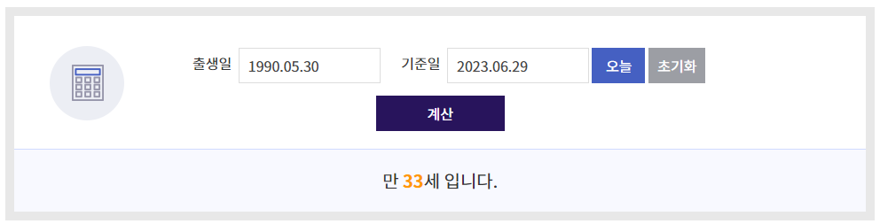 만나이 계산법 계산기 (병역의무 이행 연령기준 적용 안해)
