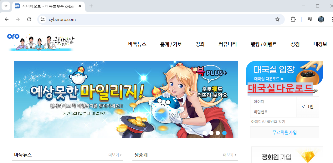 • 1️⃣ 공식 홈페이지 접속: 컴퓨터 웹 브라우저(인터넷 창)를 열고 https://www.cyberoro.com에 접속합니다.