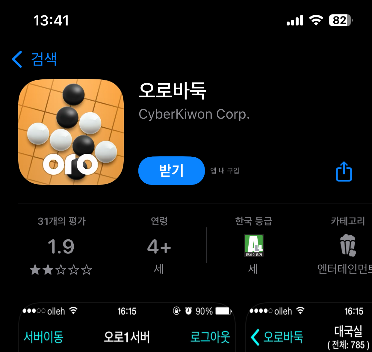 • 2️⃣ 앱 검색: 검색창에 ‘사이버오로’를 입력하고 검색합니다.검색후 오로바둑이라는 앱을 찾습니다.