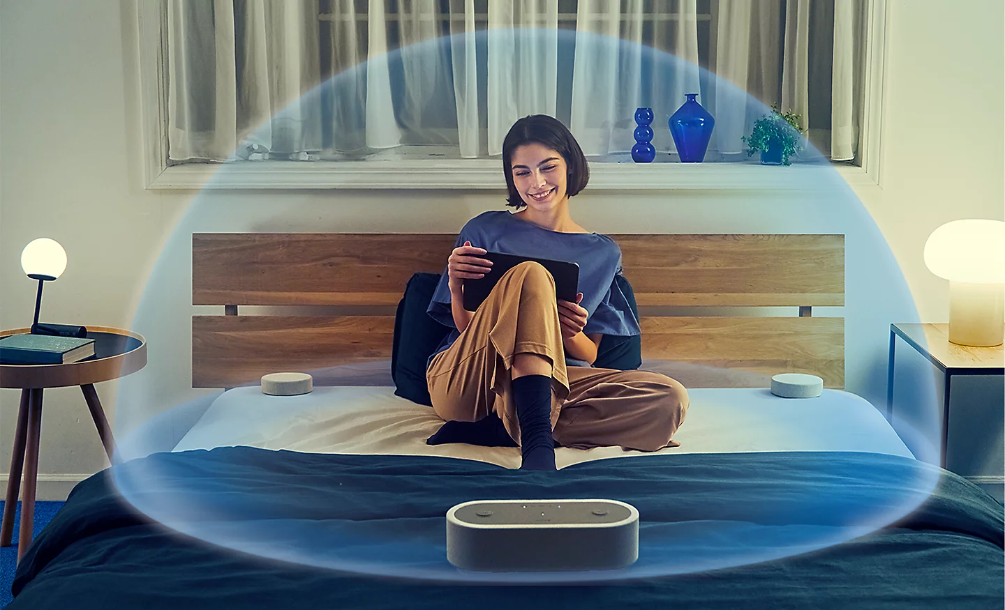 HT-AX7은 360 Spatial Sound Mapping 기술을 사용하여 전면, 후면 및 오버헤드에 여러 개의 팬텀 스피커를 생성하여 공간 사운드에 둘러싸여 있습니다. 3개의 스피커를 주변에 배치하기만 하면 완전히 몰입되는 느낌을 받을 수 있습니다.