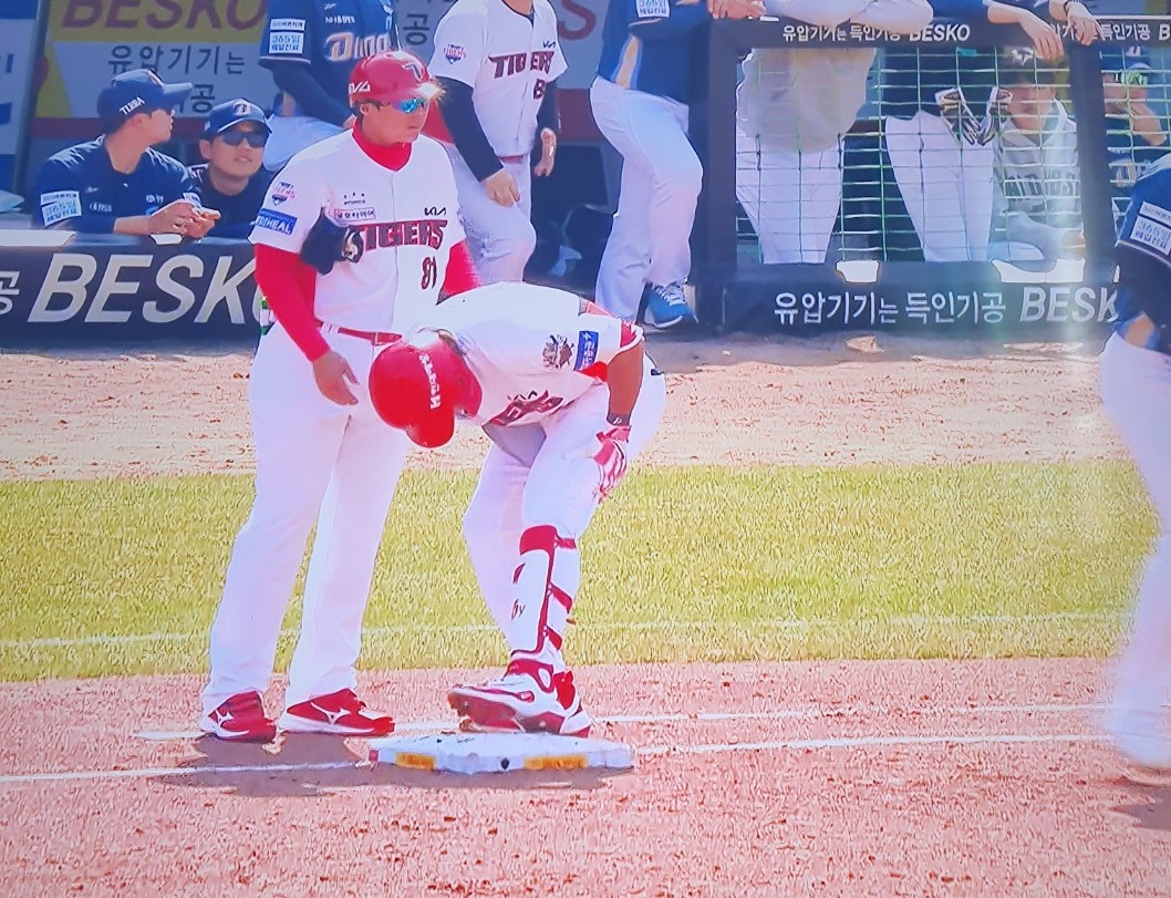 3회말 두 번째 타석에서 김도영은 좌전 안타를 치고 1루로 전력질주했다. 그러나 1루를 돌아 귀루하는 과정에서 왼쪽 허벅지를 움켜쥐며 주저앉았고, 트레이너의 확인 끝에 더 이상 경기를 뛸 수 없다는 판단 하에 교체됐다. 대주자 윤도현이 투입되었으며, 이후 나성범이 병살타로 물러나며 추가 득점 기회를 살리지 못했다.