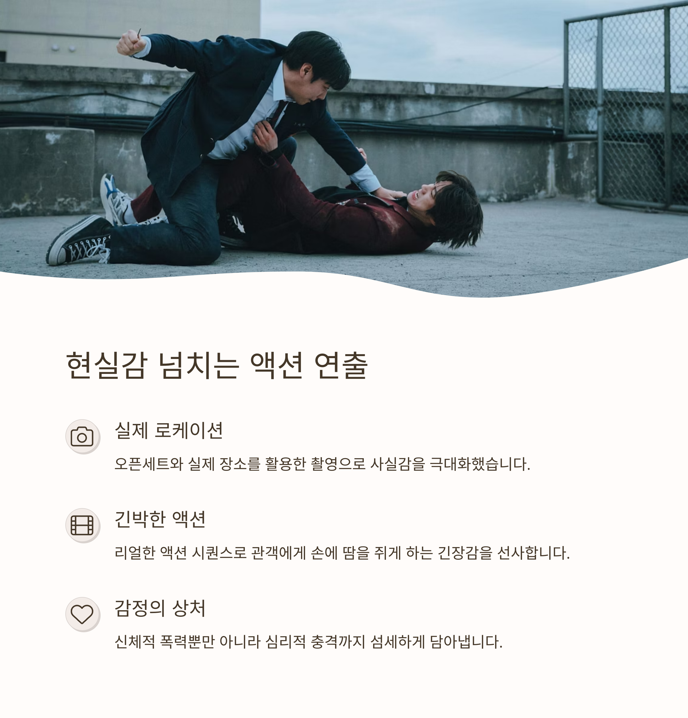 "처절하지만 이유 있는 폭력"이 만들어내는 장면들이 깊은 몰입감을 제공합니다.