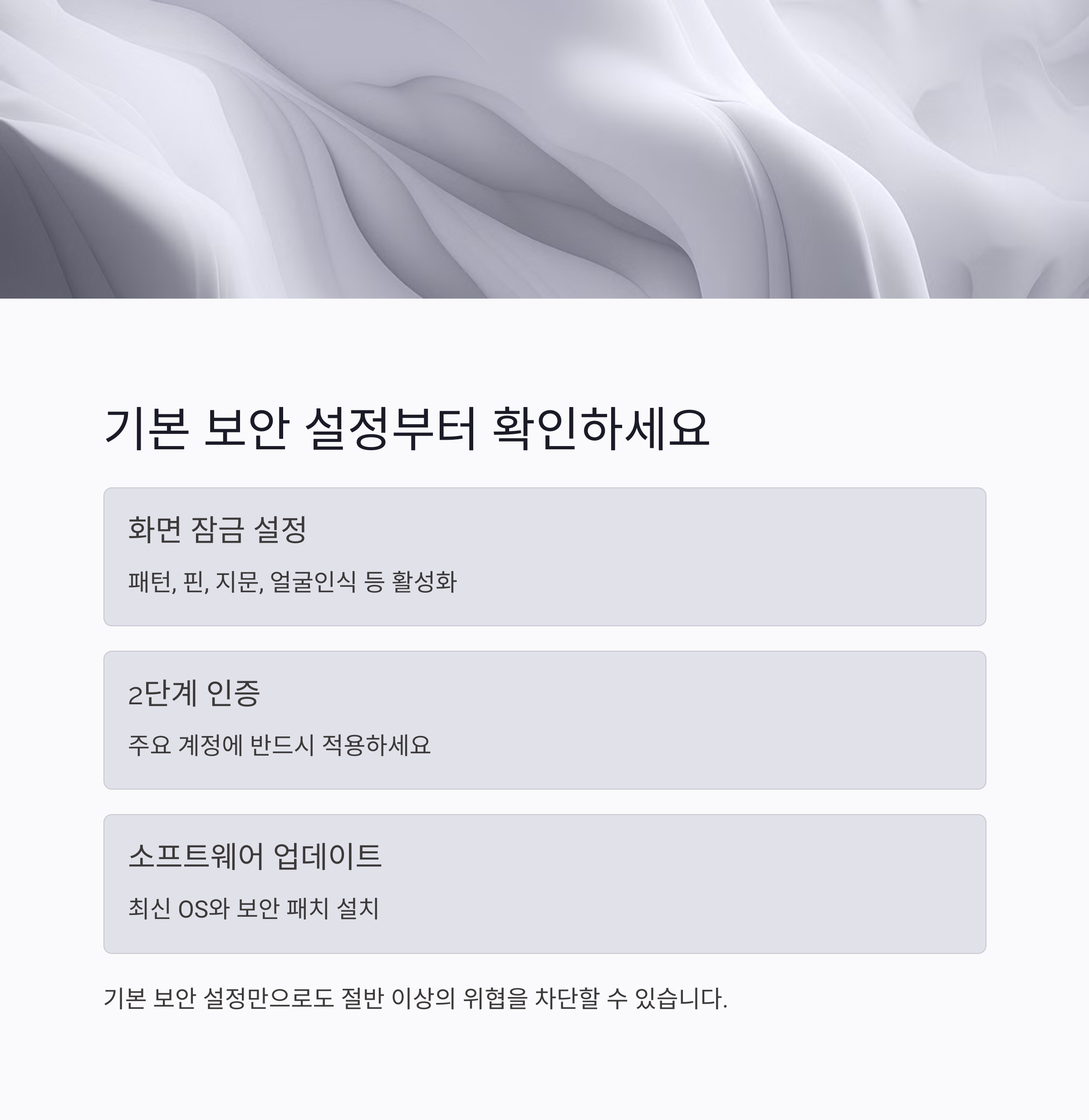 | 화면 잠금 설정 | 패턴, 핀, 지문, 얼굴인식 등 활성화 |