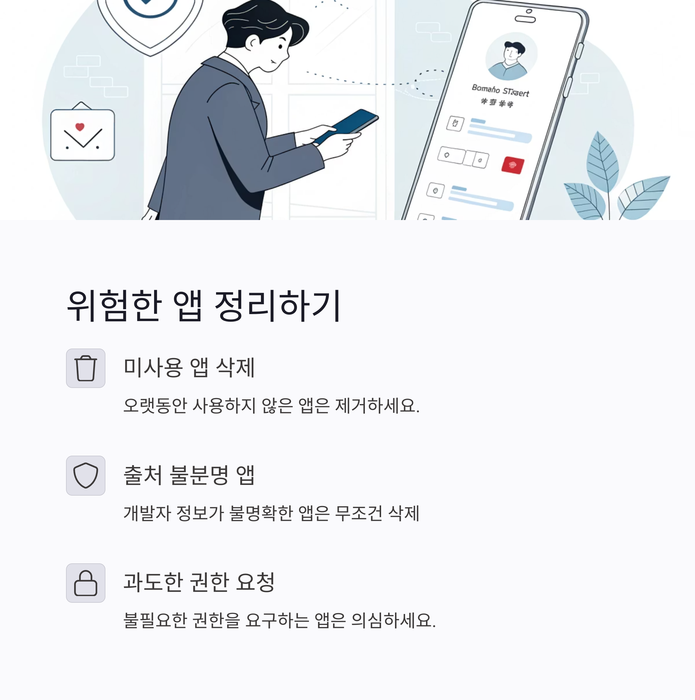 특히, 개발자 정보가 불명확한 앱은 반드시 제거해야 합니다.