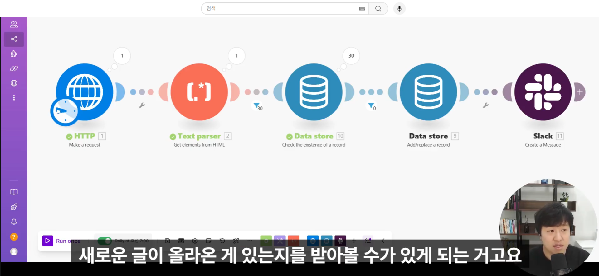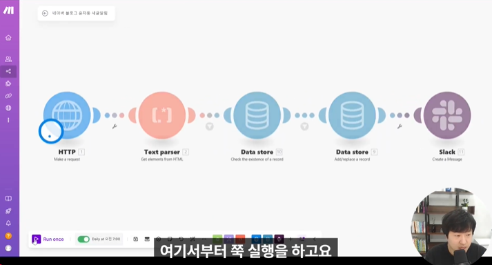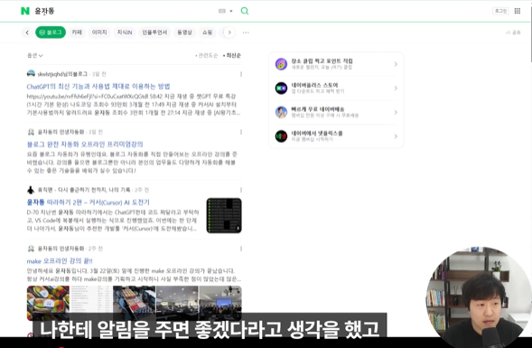 윤자동 네이버 블로그 키워드 자동알림 시스템 만들기 (윤자동님의 MAKE 활용 실전), Make로 코딩 없이 자동 설정하기, 유튜브 확인까지