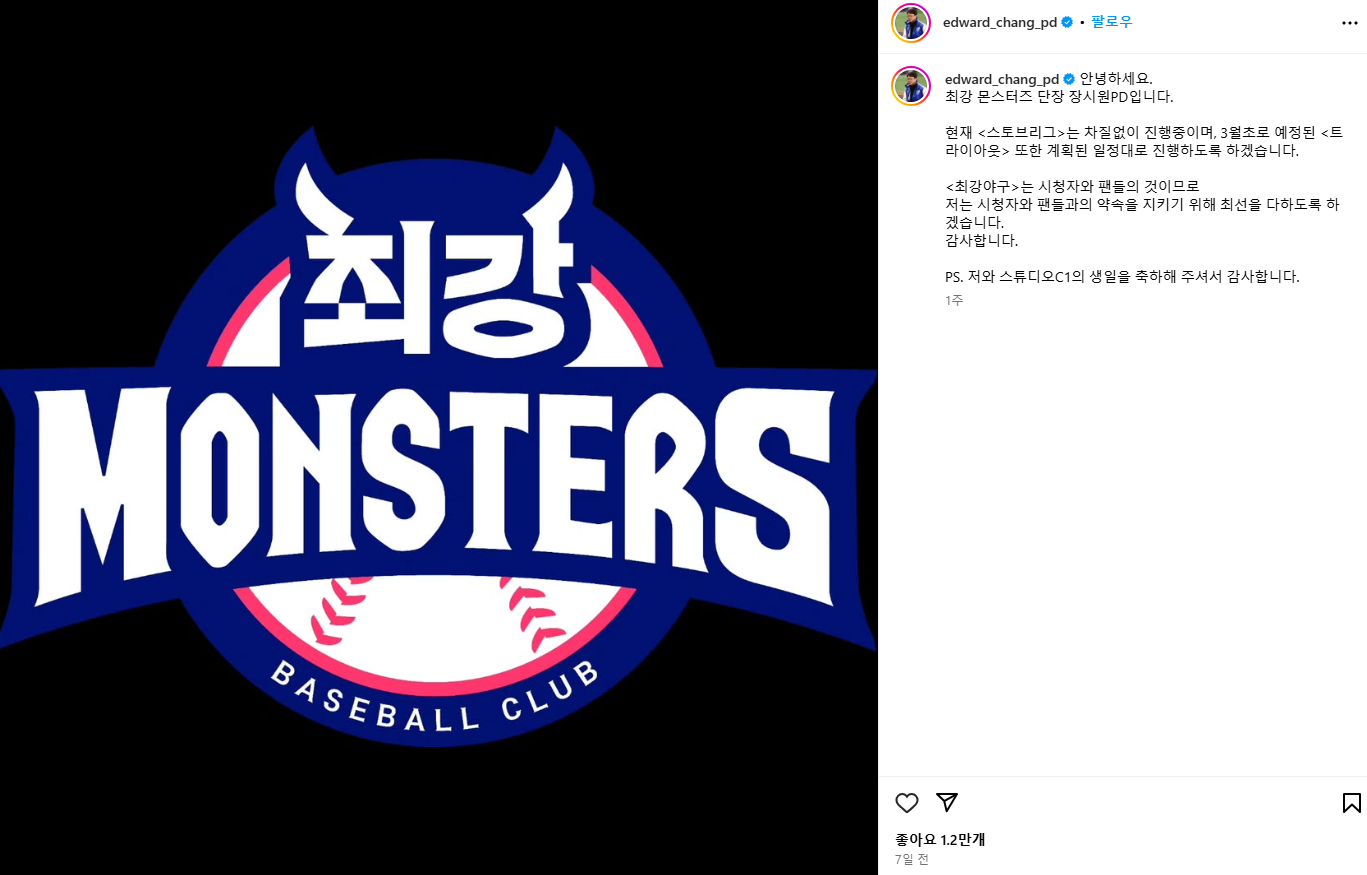 최강야구 트라이아웃 취소? JTBC와 장시원 PD 갈등의 진실! 장시원 PD 인스타