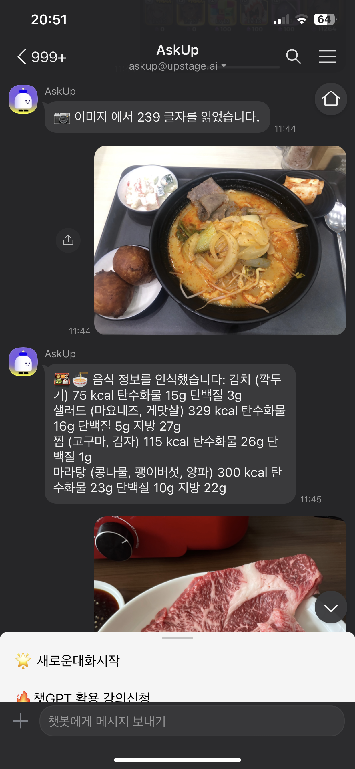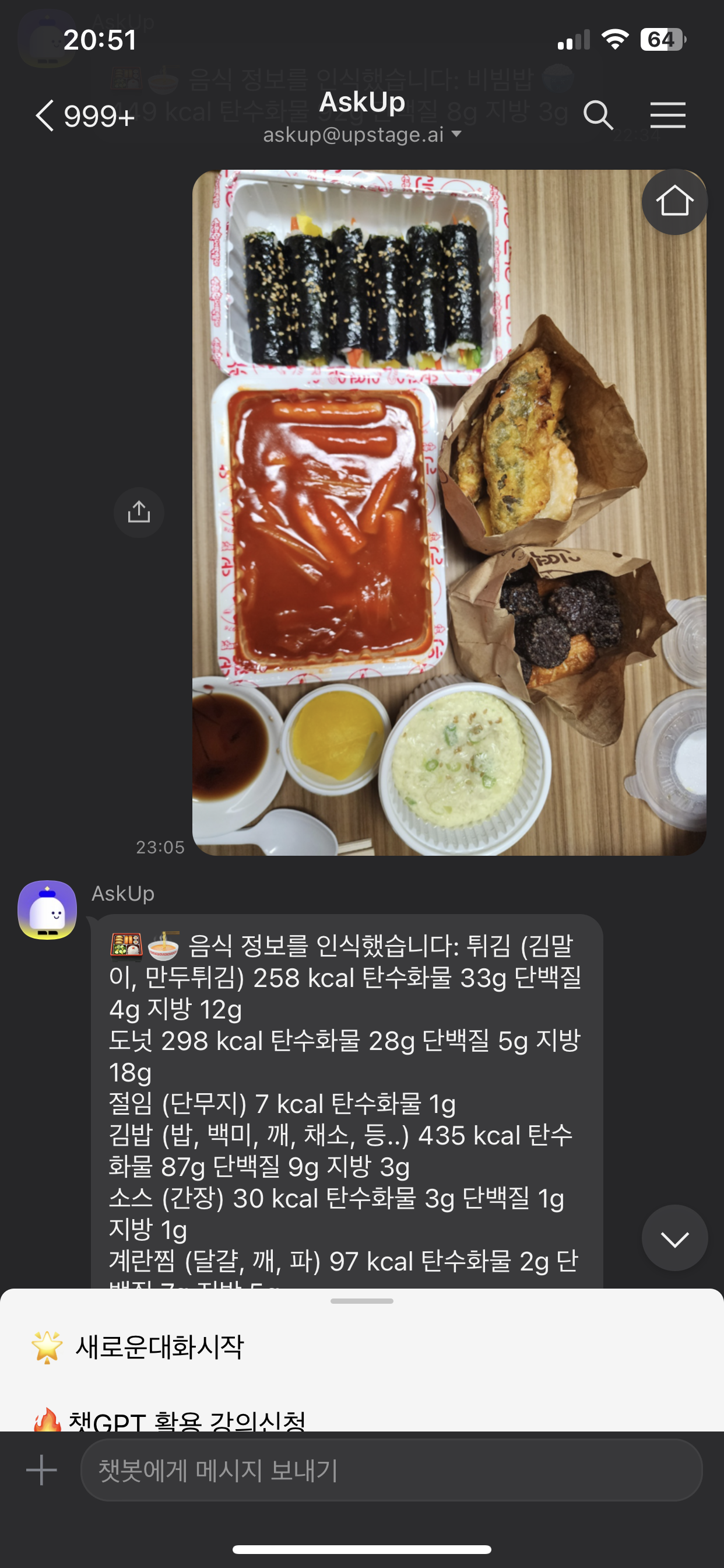 이미지 속 텍스트를 인식해서 원하는 답변을 하고 오늘 먹은 음식의 사진을 찍으면 음식의 칼로리까지 표시해 줍니다.