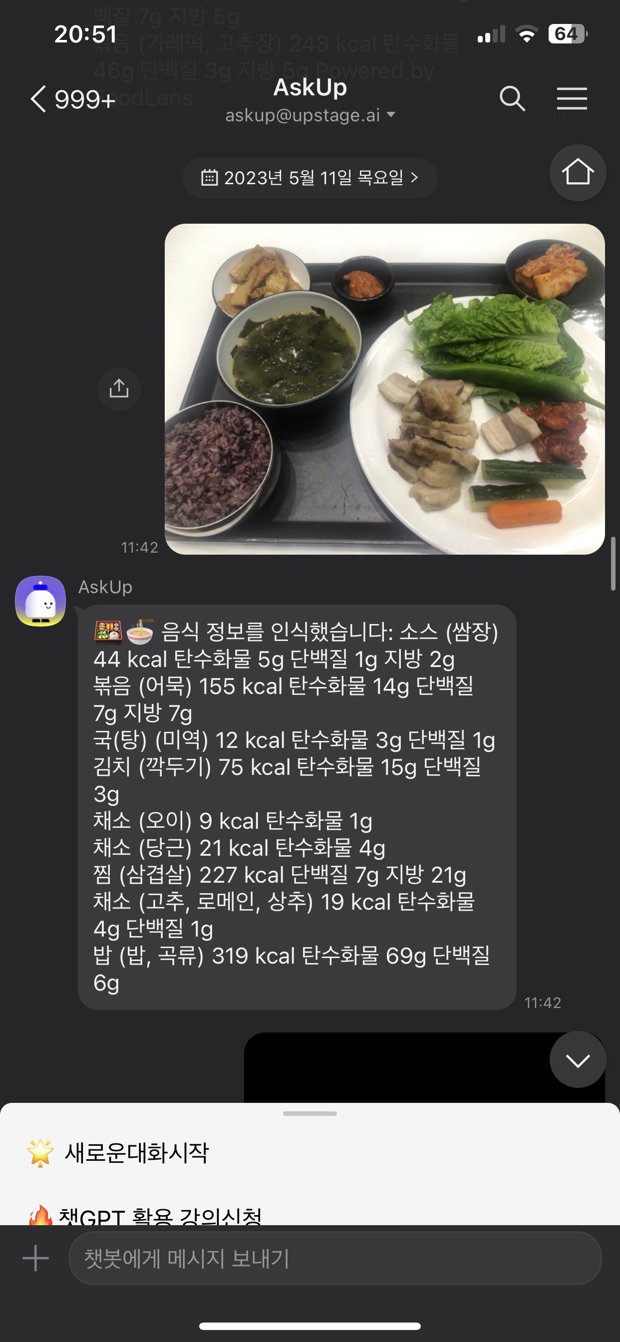이미지 속 텍스트를 인식해서 원하는 답변을 하고 오늘 먹은 음식의 사진을 찍으면 음식의 칼로리까지 표시해 줍니다.
