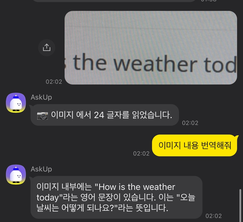 그리고 이미지의 내용을 번역해 달라고 하자 위 사진과 같이 바로 번역을 해서 알려줍니다.