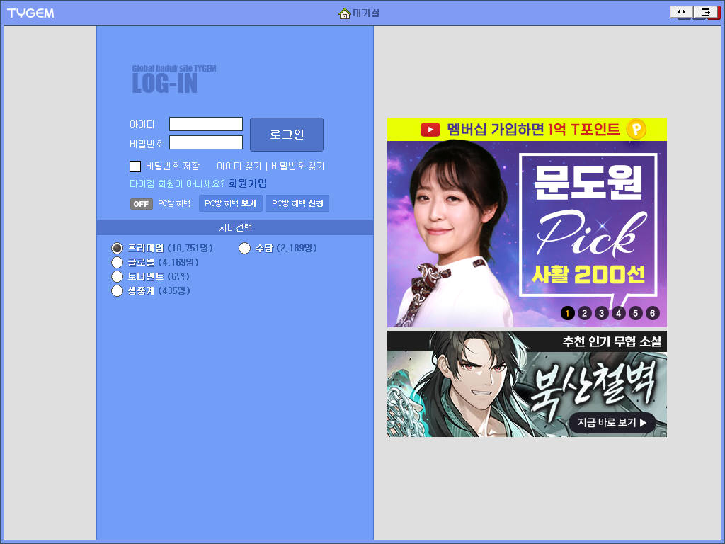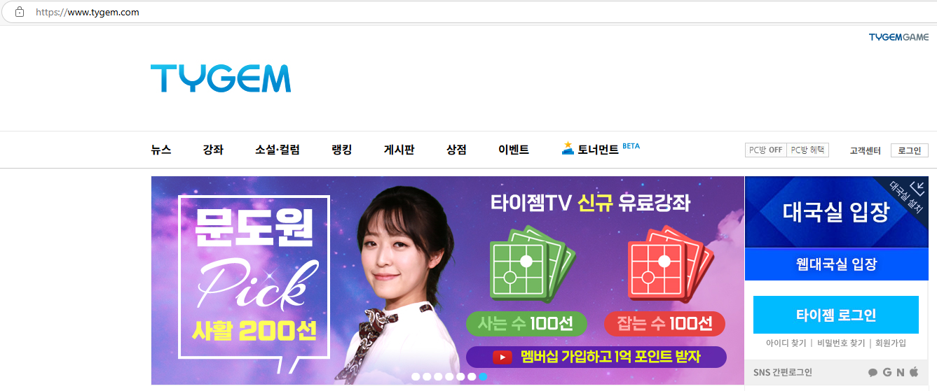 • 1️⃣ 공식 홈페이지 접속: 컴퓨터 웹 브라우저를 열고 https://www.tygem.com에 접속합니다.