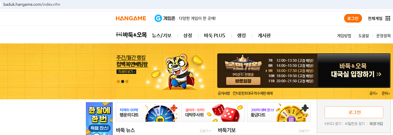 - 1️⃣ 공식 홈페이지 접속: 컴퓨터 웹 브라우저에서 https://baduk.hangame.com에 접속합니다.