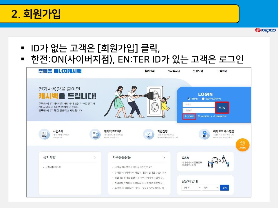 포털사이트 네이버, 구글 등에 ‘한전 에너지캐시백’ 검색 시 홈페이지로 바로 접속 가능하며, 한전 고객센터(☏123) 문의를 통해 가입경로를 문자로 받을 수 있으며 별도의 신청 기한을 두지 않으므로 연중 언제든지 신청할 수 있습니다.