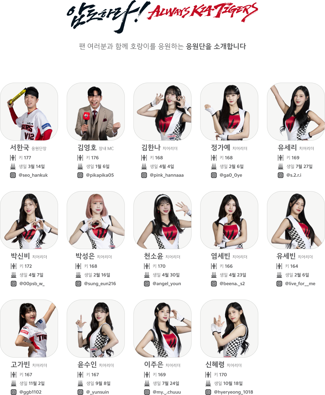 2024년 프로야구 기아타이거즈 선수단 치어리더 알아보기