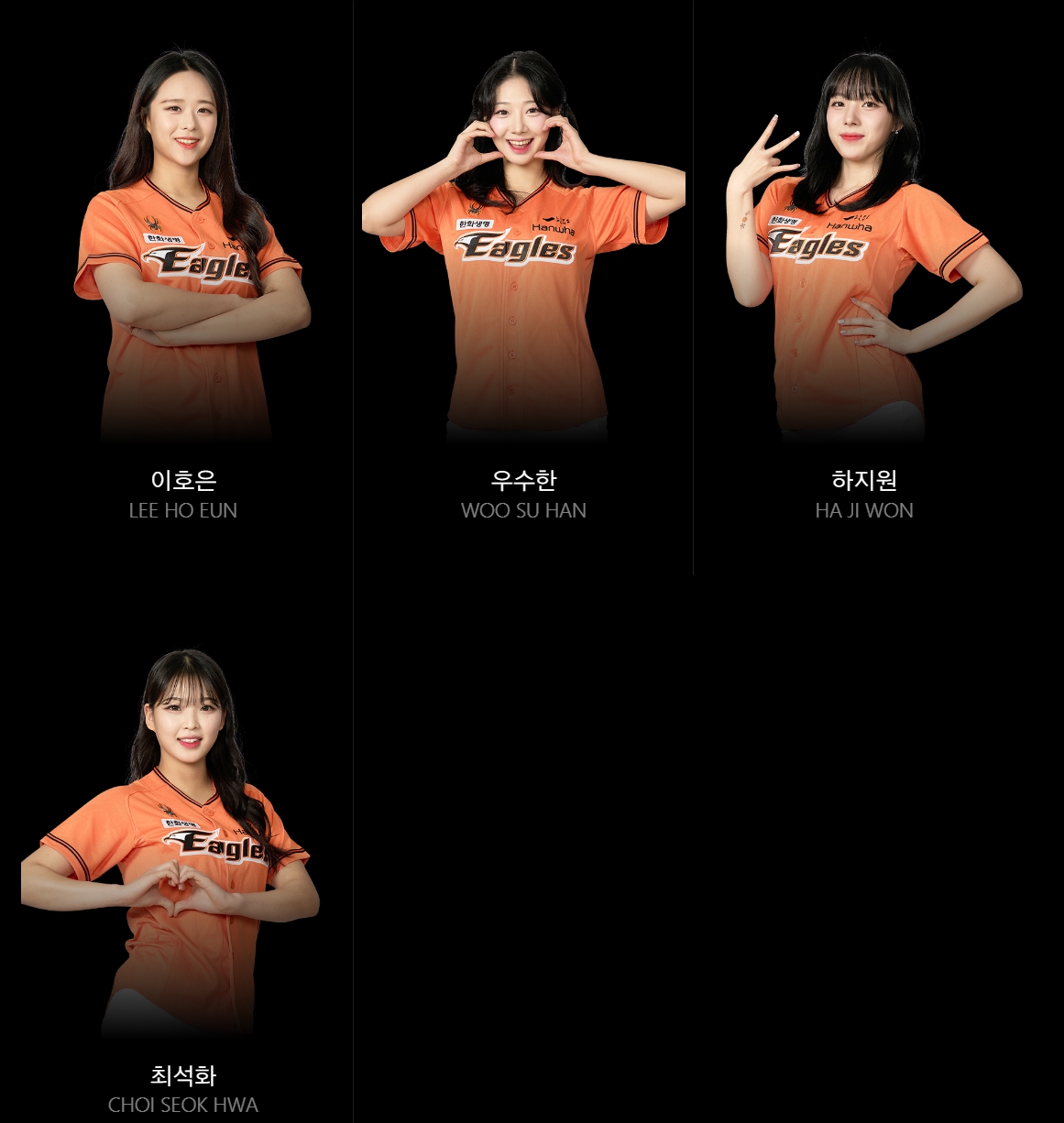 우수한 치어리더 출생 : 2001년 11월 9일 경력 : LG 트윈스, 원주 DB 프로미 치어리더, 한화 이글스 치어리 2020년부터 원주 DB프로미의 치어리더로 활동하다가 2021 시즌부터 LG트윈스 치어리더로 활동