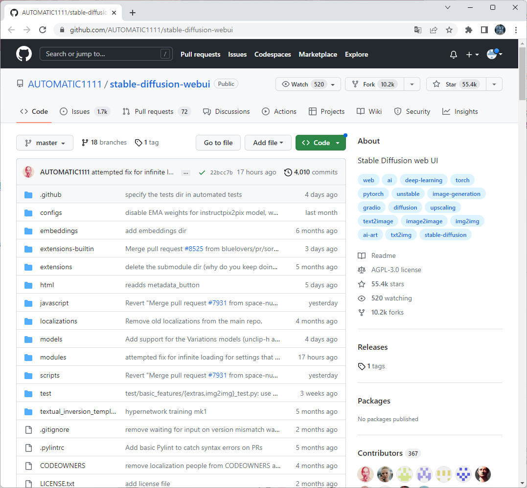 https://github.com/AUTOMATIC1111/stable-diffusion-webui