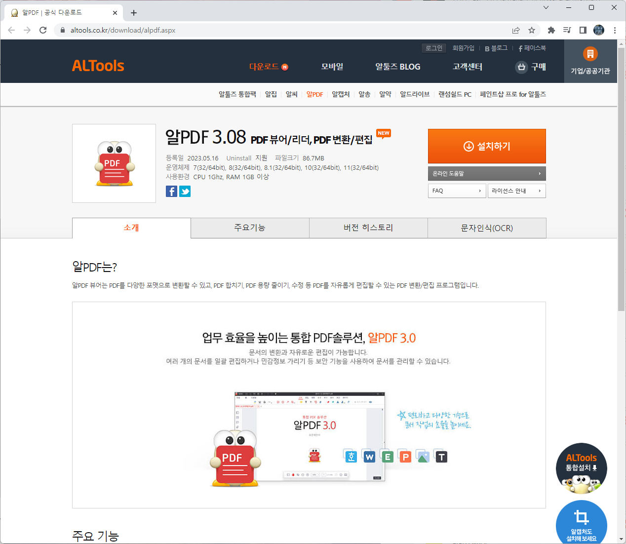 알PDF는 이스트소프트에서 나온 프로그램들 중 하나로 알집만큼이나 유용하고 무료프로그램인 만큼 적극 추천드립니다.