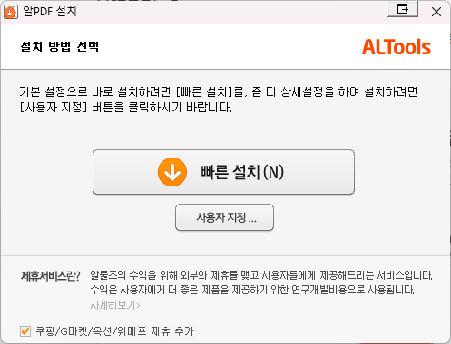 주의 사항으로는 설치 시 꼭 불필요한 제휴 설치를 하지 않도록 체크 해지 하는 것 잊지 마시기 바랍니다.