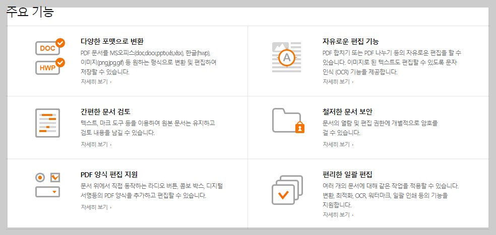 알PDF는 아래와 같은 주요 기능들이 있으며 사용하기도 편리합니다.