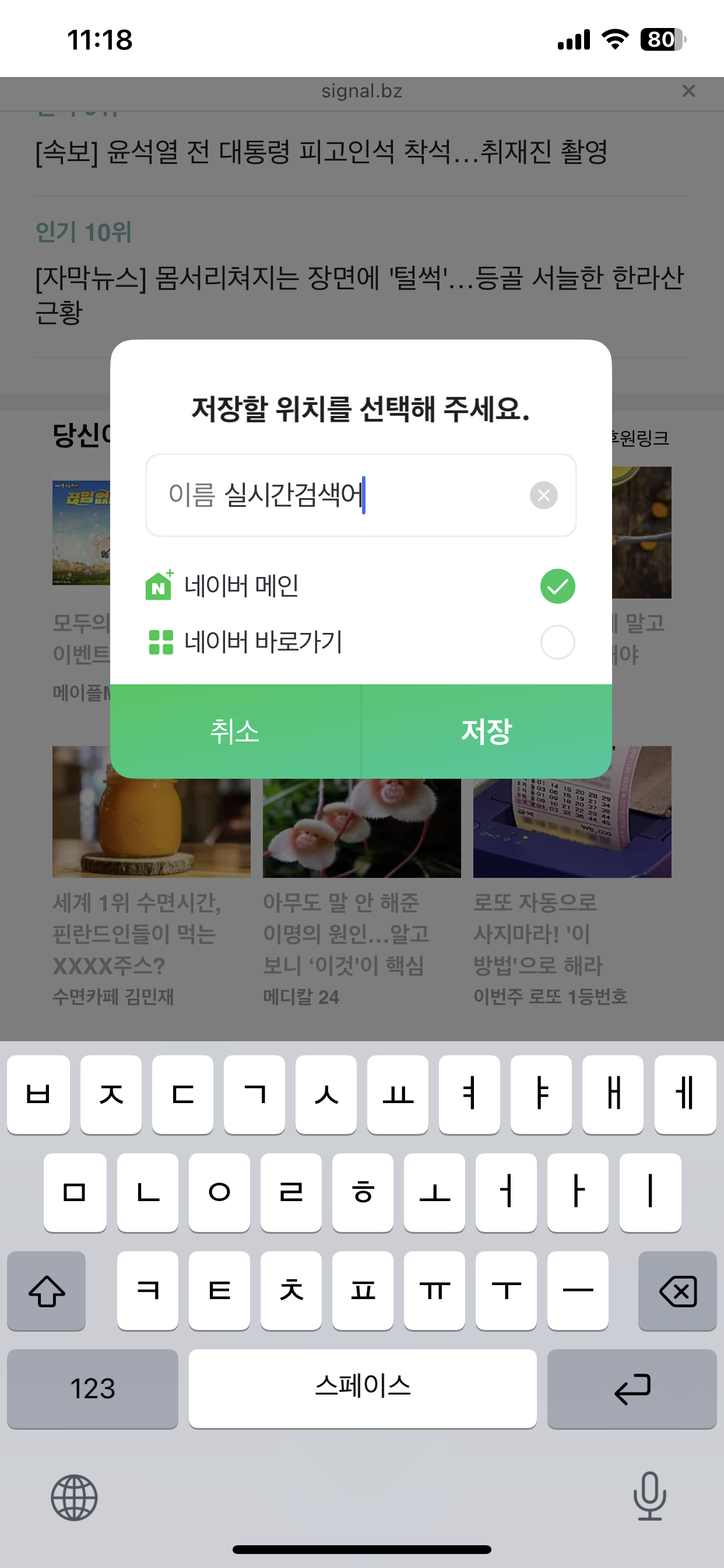 Signal.bz의 실시간 검색 기능을 내 기기에 추가하는 방법은 다음과 같습니다: