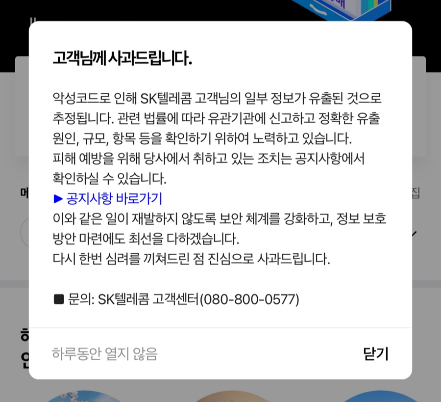 2025년 4월 19일 발생한 유심 정보 유출 관련 사과 사진